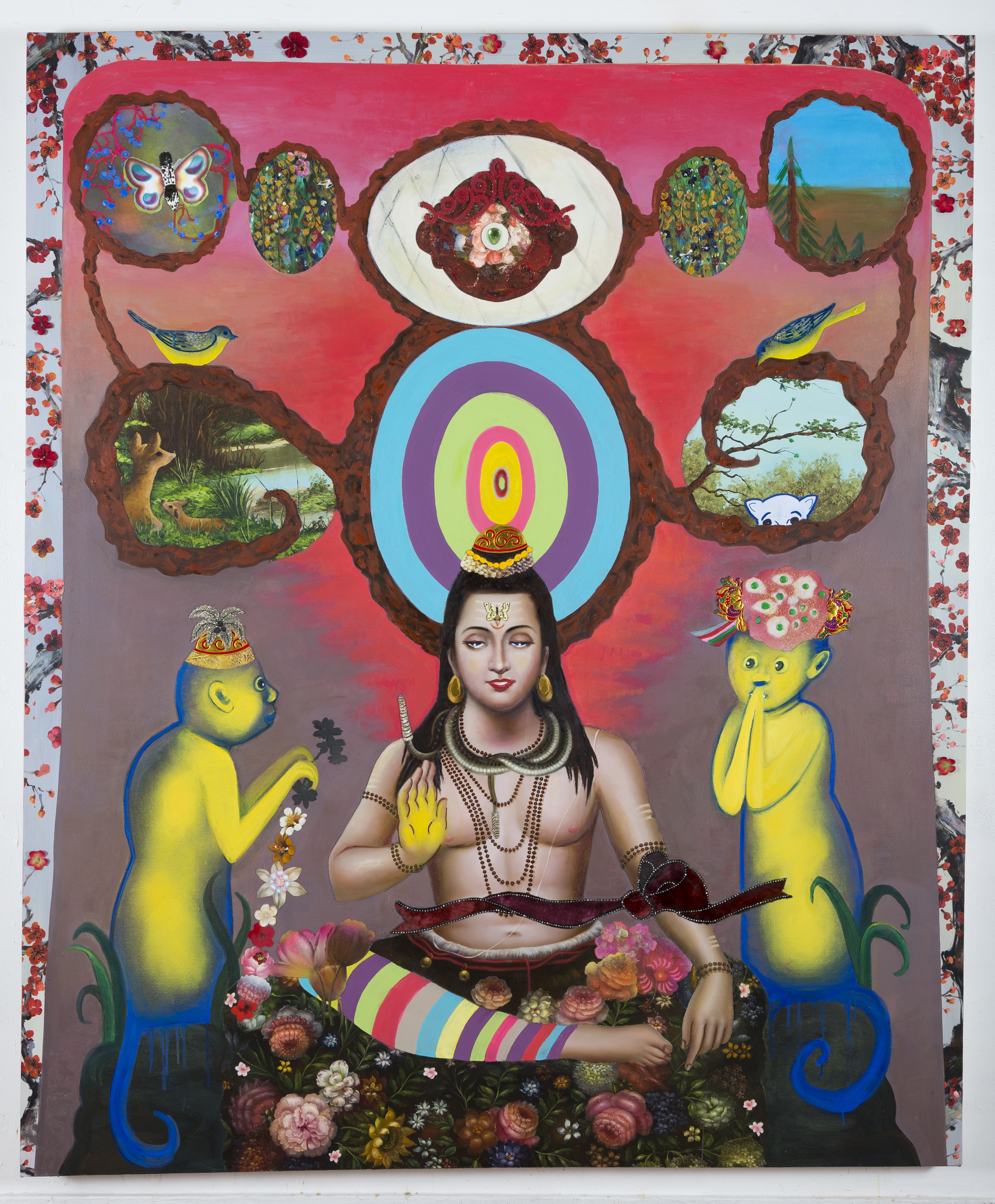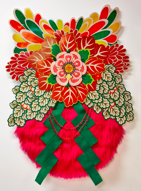 Susan Block Gallery: Mayumi Lake creates a site-specific installation in the Susan Block Gallery that reclaims and updates the use of Housouge. Housouge is a motif made up of a fanciful fusion of flowers, leaves, and fruit. During times of disaster in ancient Japan, whether natural or human-made, individuals filled sacred sites with these bold, mythical flowers to quell fear and despair. This installation hints at the perils we have in front of us.