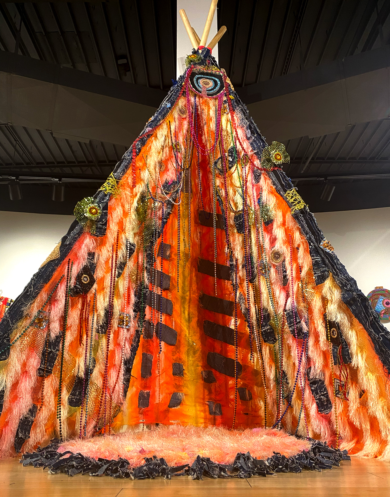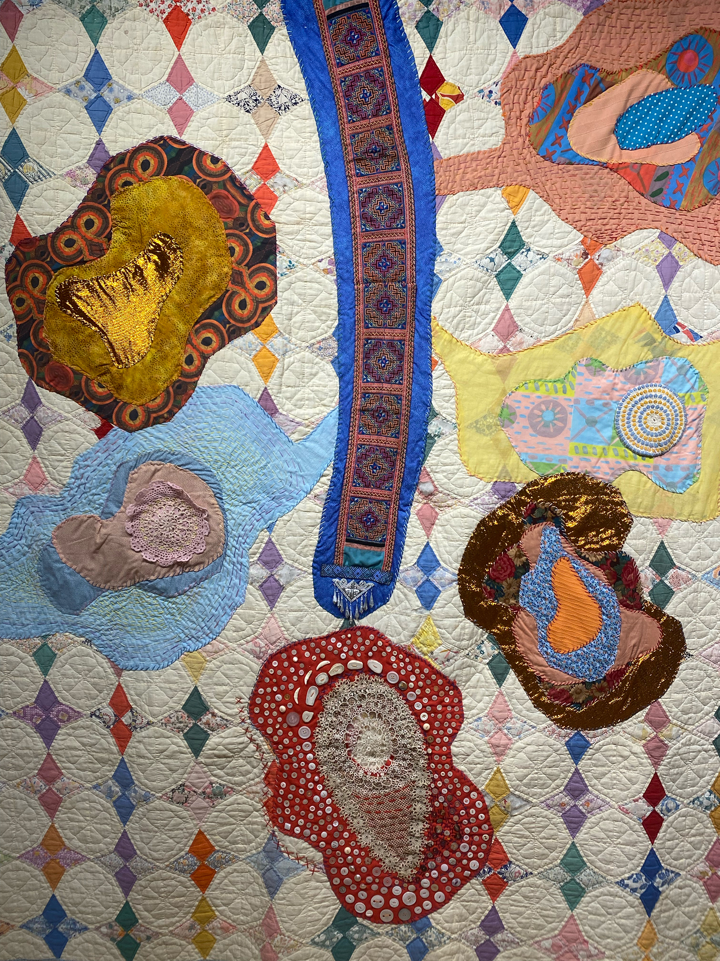 The fiber arts movement of the 60s and 70s took place alongside the Civil Rights, Women’s Liberation, and Anti-War movements and was clearly inspired by those revolutionary times. Many artists working in fiber were also activists pushing for social change and social justice like the extraordinary Faith Ringgold and Emma Amos. Those who identified as fiber artists were mainly women whose chosen medium, up to that point, had been devalued by the patriarchy and characterized as “women’s work” or craft rather than fine art. Together these revolutionary artists reclaimed the power of the needle and made space to share their stories, their experiences, and their masterful artworks in the Western fine art canon.